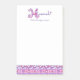 Hannah personalised H name meaning or message post it notes. Initial H monogram name and meaning in purple, pink and white. Ideal for a personalised gift for a girl who has a name that starts with the letter H. This example reads Hannah Blessed with beauty poise and grace or you can customise the text with your own name or message if required. Makes a unique office celebration gift. © Decorative typographic letter H flowers with hearts hand drawn and pattern uniquely created by Sarah Trett for www.mylittleeden.com