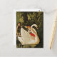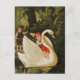 Vintage illustration of Gretel riding a large white swan. Hansel stands on the edge of the water watching his sister. Old-fashioned child's book illustration in public domain.