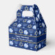 Beautiful Hanukkah party favour box in pretty blue with a cool pattern of Judaism star, dreidel for fun Chanukah games, and the Jewish menorah for the holiday. Monogram with your own gift message from your family.