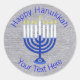 Hanukkah Dark Blue Menorah On Faux Silver Cute Classic Round Sticker