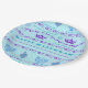 Here's a fun paper plate for your Hanukkah parties, with hanukkias [menorahs], Star of David motifs, crowns and driedels, and the famous "V'al ha Nissim" in Hebrew, with the other Hanukkah standard "Maoz Tzur" in transliteration. In a variety of oh so Jewish blues and purples, this fun paper will spice up your holiday parties.