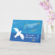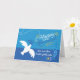 Happy Hanukkah for a rabbi, paper greeting card with a digital illustration of a peace dove, flowers, Star of David, and handwritten style lettering. Customise the cover with your rabbi’s name. Art, image, and verse copyright © Shoaff Ballanger Studios, 2022.