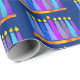 A playful, modern, artsy illustration of funky, playful, boho pattern candles in a menorah helps you usher in the holiday of Hanukkah. Assorted blue candles with colourful faux foil patterns overlay a rich, deep blue background. Feel the warmth and joy of the holiday season whenever you use this stunning, colourful Hanukkah wrapping paper. Matching cards, envelopes, stickers, tote bags, puzzles, blankets, serving trays, home décor, and more are also available. Turns a great present into something even better!