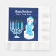 Personalised Happy Hanukkah large luncheon paper napkins are appropriate for lunch and dinner celebrations. Check my shop for matching party decorations, plates, table runners and more. This smiling snowman in his blue Star Of David scarf and blue Menorah will set off your white text on the dark blue background stripes.