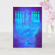 Hanukkah Menorah holiday card in beautiful shades of dark and light blues. The inside greeting reads: With warmest wishes at Hanukkah, for peace in your home...