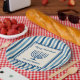 Bring timeless elegance to your Hanukkah table with these blue striped plates featuring a classic menorah design. The rich navy and cream palette adds a sophisticated touch to your celebration. Personalize with your family name for a festive, polished look perfect for holiday dinners or Hanukkah parties.
