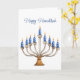 Hanukkah Menorah with Blue, White Burning Candles Card