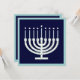 A whimsical menorah in circles of blue and green makes a welcoming invitation to your Hanukkah celebration.