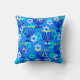 This throw pillow has a Hanukkah design of menorahs and stars on a blue background. Great for the season.