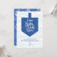 Dreidels and swirls decorate this fun and festive Hanukkah party invitation.