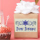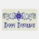 Scrollwork holds a Star of David with a Peace sign in the centre and a wish for a Happy Hanukkah.
