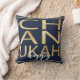 Hanukkah Pillow "Chanukah Happy Gold/Blue" Two sided pillow which comes in 3 fabric choices (price will change depending on choice of fabric.)