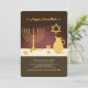 Invite guests to a Hanukkah party with this handsome invitation featuring a menorah, dreidels, wine and Star of David. (<a href='http://www.freepik.com/free-vector/flat-background-with-hanukkah-objects-and-snow_1000946.htm'>Designed by Freepik</a>). <br/><br/>The card is easy to customise with your wording, font, font colour, paper shape options and choice of six paper types.<br/><br/>Not exactly what you're looking for? All our products can be custom designed to meet your needs at no extra charge.<br/><br/>Simply contact us at askcottonlamb@gmail.com.<br/><br/>Coordinating products available: Just ask us!