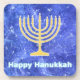 A glowing gold Hanukkah menorah and text reading "Happy Hanukkah" in glowing blue and white superimposed on a blue and white fractal image reminiscent of snowflakes in a storm. Chag Sameach!