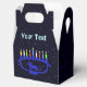 Features a lion-themed Chanukkah menorah, superimposed on a starry background, with all eight candles and the shamash burning. Hebrew text reading, "Chag Chanukkah Sameach" (Happy Hanukkah) appears in glowing blue and white on the reverse side. Add your own text on the front. Chag Sameach! Chanukkah is the mid-winter "Festival of Lights."
