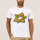 For you hanukkah celebration this design is just perfect. It is a hanukkah star. The design has the star on an angle with one part of the star being an orange colour and the other part being yellow. It is a very effective look. This hanukkah star design looks great on this mens t-shirt. Perfect for yourself or as a gift