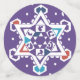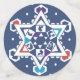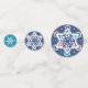 This design shows a pattern made from snowflakes in the shape of Stars of David. The larger ones include Hanukkah dreidel motifs. The snowflake designs integrate are set against a nighttime sky with falling snow. The pattern represents the winter season during which Hanukkah falls.