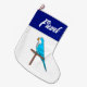 A blue and white Hanukkah stocking with a blue Quaker parrot. The name can be changed.