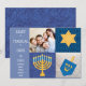 A Menorah, Star of David and Dreidel with a quilt applique look wish friends and family Eight Magical Days on this charming Photo Card. Reverse side has a blue quilted look. Customise with your Family's Photo and Names for a truly personal Hanukkah greeting!