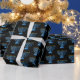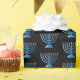 This wrapping paper celebrates Hanukkah with a menorah print on a black background colour.