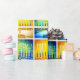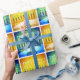 A close-up photo illustration of bright, colourful, blue green and yellow gold artsy menorahs helps you usher in the holiday of Hanukkah in style. Feel the warmth and joy of the holiday season whenever you use this bright, colourful Hanukkah wrapping paper. Matching cards, postage, stickers, pillows, housewares, totebags, and other products are also available in my “Hanukkah Colourful, Artsy Menorah” store collection. Turns a great present into something even better!