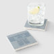The coasters are gorgeous, a quality feel and heavy weight. They look like a precious archeological find. A rustic stone juxtaposed with a modern floral black and white print. I like the way the print goes slightly imperfect on the cut stone edges giving them a kind-of natural beauty.