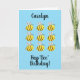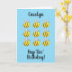 This cute Happy Birthday greetings card is decorated with cartoon style baby bees, and can be personalised with your name and greeting. The front of the card reads: Hap"Bee" Birthday! Inside reads: Have a "Bee"utiful day. The bees are mainly bright yellow and decorate both the front and the inside of the card. The front and inside front of the card have a pale blue background.