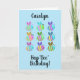This cute Happy Birthday greetings card is decorated with cartoon style baby bees in soft pastel colours, and can be personalised with your name and greeting. The front of the card reads: Hap"Bee" Birthday! Inside reads: Have a "Bee"utiful day. The bees decorate both the front and the inside of the card. The front and inside front of the card have a pale blue background.