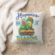 Vibrant, colourful design featuring an open book, colourful dragon, and flowers. The colourful text reads: "Happier when I'm reading". This design is available on a wide variety of products.