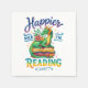 Vibrant, colourful design featuring an open book, colourful dragon, and flowers. The colourful text reads: "Happier when I'm reading". This design is available on a wide variety of products.