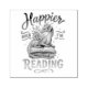 Vibrant, colourful design featuring an open book, colourful dragon, and flowers. The colourful text reads: "Happier when I'm reading". This design is available on a wide variety of products.