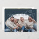 Cute Christmas Photo template card featuring a text that says "happiest holidays." Add your family pictures on this blue arch frame card. There is an illustration of a bow.