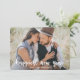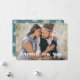 Celebrate the new year with a stylish Happiest New Year photo card. The holiday photo card features an overlay with the words "Happiest New Year" in a white script font and a placeholder for custom text and photo. The back features a wintry snowflake pattern.