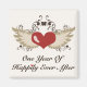 A winged heart in warm red and neutral tones on matching his and her first anniversary wedding gifts, stationery, greeting cards and apparel with the words One Year Of Happily Ever After. Celebrate your first year of marriage together with these cute and trendy first anniversary gifts for you and your spouse.