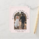 Elegant light pink elopement or smaller wedding announcement and reception invitation postcard. The front features your wedding photo in an arch frame and "Happily Ever After" in elegant typography. Under your photo, add your first names and wedding date. On the reverse, personalise your message and invitation and add your names in a signature-like script.