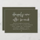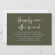 Mark the beginning of your forever with elegance using our contemporary-themed wedding elopement celebration invitation card, "Happily Ever After Brunch". Perfect for couples extending their joyous occasion, this invitation exudes sophistication with a hint of playfulness, setting the stage for a memorable event. Adorned with a timeless olive green theme, it adds a touch of refined charm to your festivities. Crafted by TeeshaDerrick, this invitation promises to beautifully capture your love story.