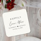 Chic cream paper coasters for your wedding reception, rehearsal dinner, engagement party and other wedding celebrations featuring "Happily Ever After" in simple typography and a stylish modern script, your names joined by a heart and your wedding date.