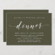 Mark the beginning of your forever with elegance using our contemporary olive green theme wedding elopement celebration invitation card, "Happily Ever After Dinner". Perfect for couples extending their joyous occasion, this invitation exudes sophistication with a hint of playfulness, setting the stage for a memorable event. Adorned with a timeless modern script design theme, it adds a touch of refined charm to your festivities. Crafted by TeeshaDerrick, this invitation promises to beautifully capture your love story.