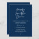 Announce and share your happily ever after in style with our modern navy blue theme design "happily ever after dinner" wedding reception celebration invitation card. It is ideal for couples who have decided to celebrate their best day. With its sophisticated yet playful design, this invitation is sure to set the tone for an unforgettable event. The invitation card features a modern and minimalist script design theme, adding a touch of timeless elegance to your celebration. Designed by TeeshaDerrick