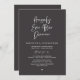 Announce and share your happily ever after in style with our modern charcoal grey theme design "happily ever after dinner" wedding reception celebration invitation card. It is ideal for couples who have decided to celebrate their best day. With its sophisticated yet playful design, this invitation is sure to set the tone for an unforgettable event. The invitation card features a modern and minimalist script design theme, adding a touch of timeless elegance to your celebration. Designed by TeeshaDerrick