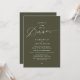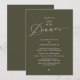 Mark the beginning of your forever with elegance using our contemporary olive green theme wedding elopement Reception celebration invitation card, "Happily Ever After Dinner". Perfect for couples extending their joyous occasion, this invitation exudes sophistication with a hint of playfulness, setting the stage for a memorable event. Adorned with a timeless modern script design theme, it adds a touch of refined charm to your festivities. Crafted by TeeshaDerrick, this invitation promises to beautifully capture your love story.
