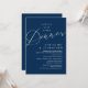 Announce and share your happily ever after in style with our modern romantic beautiful navy blue theme design (Happily ever after dinner) wedding elopement celebration invitation card. It is ideal for couples who have decided to celebrate their best day. With its sophisticated yet playful design, this invitation is sure to set the tone for an unforgettable event. The invitation card features a modern and minimalist script design theme, adding a touch of timeless elegance to your celebration. Designed by TeeshaDerrick