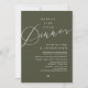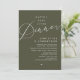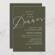 Mark the beginning of your forever with elegance using our contemporary beautiful modern olive green themed wedding elopement celebration invitation card, "Happily Ever After Dinner". Perfect for couples extending their joyous occasion, this invitation exudes sophistication with a hint of playfulness, setting the stage for a memorable event. Adorned with a timeless romantic script design theme, it adds a touch of refined charm to your festivities. Crafted by TeeshaDerrick, this invitation promises to beautifully capture your love story.