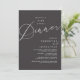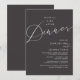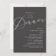 Mark the beginning of your forever with elegance using our romantic contemporary charcoal grey theme, wedding elopement celebration invitation card, "Happily Ever After Dinner". Perfect for couples extending their joyous occasion, this invitation exudes sophistication with a hint of playfulness, setting the stage for a memorable event. Adorned with a timeless modern script design theme, it adds a touch of refined charm to your festivities. Crafted by TeeshaDerrick, this invitation promises to beautifully capture your love story.