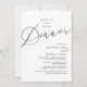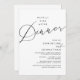 Mark the beginning of your forever with elegance using our romantic contemporary black and white theme, wedding elopement celebration invitation card, "Happily Ever After Dinner". Perfect for couples extending their joyous occasion, this invitation exudes sophistication with a hint of playfulness, setting the stage for a memorable event. Adorned with a timeless modern script design theme, it adds a touch of refined charm to your festivities. Crafted by TeeshaDerrick, this invitation promises to beautifully capture your love story.