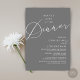 Mark the beginning of your forever with elegance using our romantic contemporary dark grey theme, wedding elopement celebration invitation card, "Happily Ever After Dinner". Perfect for couples extending their joyous occasion, this invitation exudes sophistication with a hint of playfulness, setting the stage for a memorable event. Adorned with a timeless modern script design theme, it adds a touch of refined charm to your festivities. Crafted by TeeshaDerrick, this invitation promises to beautifully capture your love story.