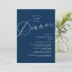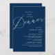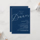 Mark the beginning of your forever with elegance using our romantic contemporary navy blue theme, wedding elopement celebration invitation card, "Happily Ever After Dinner". Perfect for couples extending their joyous occasion, this invitation exudes sophistication with a hint of playfulness, setting the stage for a memorable event. Adorned with a timeless modern script design theme, it adds a touch of refined charm to your festivities. Crafted by TeeshaDerrick, this invitation promises to beautifully capture your love story.