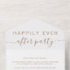 Modern elopement or smaller wedding announcement and reception all in one invitation with "Happily Ever After Party" written in a mix of simple gold typography and a chic gold script with swashes. A tear away RSVP postcard provides a convenient envelope-free response from your guests.