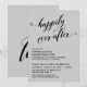 Here's a fun, simple choice for your post-wedding celebration needs. Over an editable solid background, I've placed a typography graphic that reads "happily ever after" featuring an elaborate script font embellished with hearts. Below that, your details appear in a simple, all-caps font. Use the template fields to add your own info and click to customise further if you'd like to make any additional modifications. All layers are unlocked to allow for all the positioning and sizing control you desire.