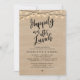 Planning a happily ever after lunch celebration at or after your wedding day? Invite your beloved guests with this "Happily ever after lunch", in modern rustic script design (cottage brown wood, string lights background) themed, indicating the date, time, venue, and RSVP details.